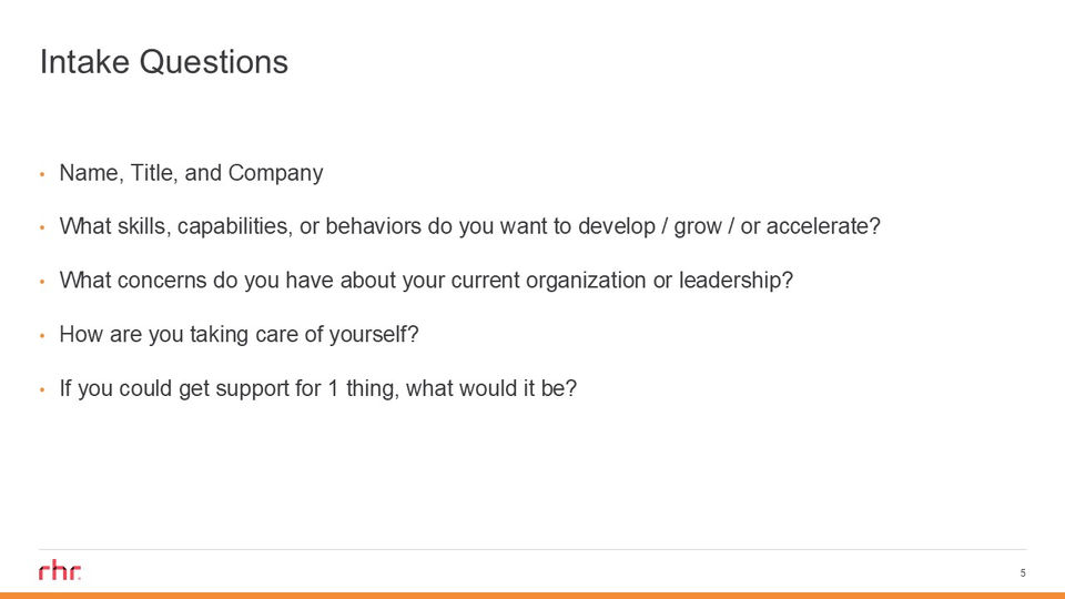 How: 90 minute virtual coaching session with an RHR Partner. Follow up email with resources and tools to support achieving objective.